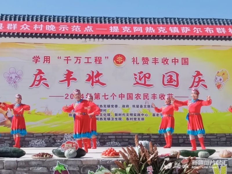 9月20日,伊犁哈薩克自治州鞏留縣提克阿熱克鎮(zhèn)舉辦“慶豐收·迎國慶·賞非遺”群眾文藝展演活動,圖為演出現(xiàn)場。杜麗娜攝