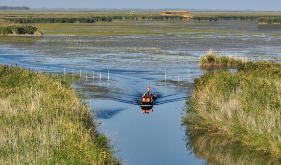 金秋時節(jié),位于新疆維吾爾自治區(qū)巴音郭楞蒙古自治州博湖縣境內(nèi)的博斯騰湖的螃蟹迎來豐收季,波光粼粼的湖面上,穿梭的漁船與蘆葦、睡蓮、沙漠構(gòu)成一幅生動的秋日畫卷。