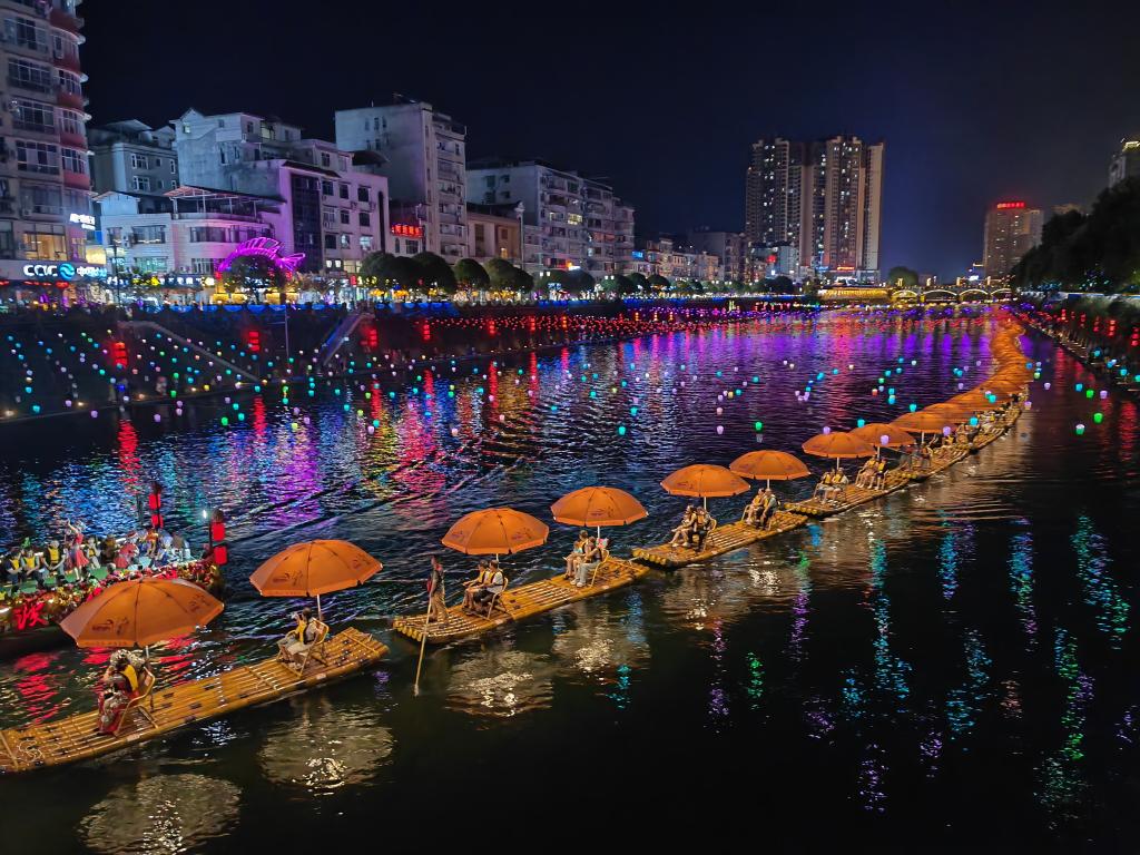 湖北宣恩,地處鄂西。一條河、兩條街,縣城的核心區(qū),是一個(gè)開(kāi)放式的4A級(jí)景區(qū)。每當(dāng)夜幕降臨,這里就進(jìn)入了一天中最熱鬧的時(shí)段。波光粼粼的河面上,兩條“龍船”滿載游客,蜿蜒行進(jìn),街市上人頭攢動(dòng),香味撲面,一幅宛如“清明上河圖”的景象令人贊嘆。