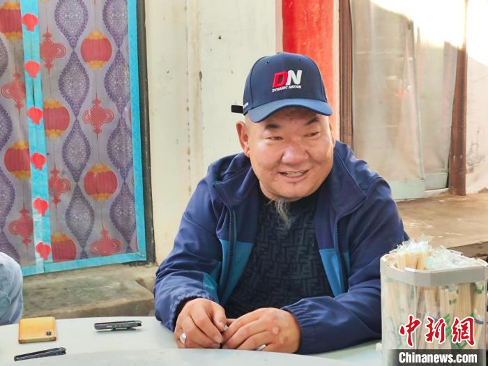 9月20日,阿拉善右旗雅布賴鎮(zhèn)嘎查牧民阿拉騰格日樂接受記者采訪。中新社記者 陳溯 攝
