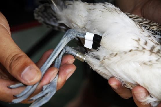 2024年9月,保護區(qū)工作人員進行鳥類環(huán)志。(受訪者供圖)