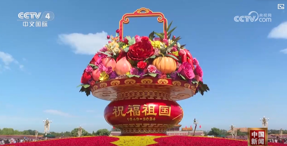 25日,北京天安門廣場和長安街沿線等重點(diǎn)區(qū)域花卉正式亮相。天安門廣場中心的“祝福祖國”大型花壇,吸引了眾多游客拍照打卡。