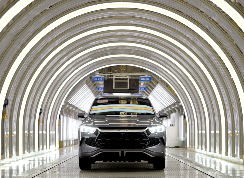 4月25日拍攝的鄭州航空港區(qū)比亞迪總裝工廠新能源汽車(chē)“宋Pro”生產(chǎn)線。新華社記者 李嘉南 攝