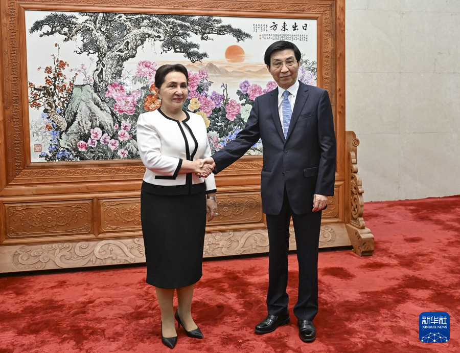 全國政協(xié)主席王滬寧26日在京會(huì)見烏茲別克斯坦最高會(huì)議參議院主席納爾巴耶娃。