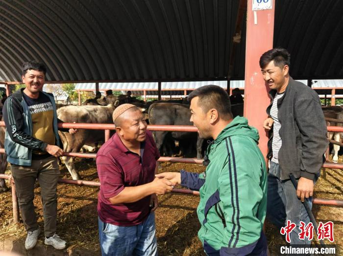 說(shuō)話間,不時(shí)有其他買家、賣家以及“牛羊經(jīng)紀(jì)人”過(guò)來(lái)與依力夏提·阿不都熱依木打招呼。他介紹道,黃公巴扎有維吾爾族、回族、哈薩克族、漢族等,大家相處融洽。他還邀請(qǐng)一個(gè)朋友向記者演示“拍手交易”——雙方用力拍手并握手,用捏手代替口頭報(bào)價(jià)。