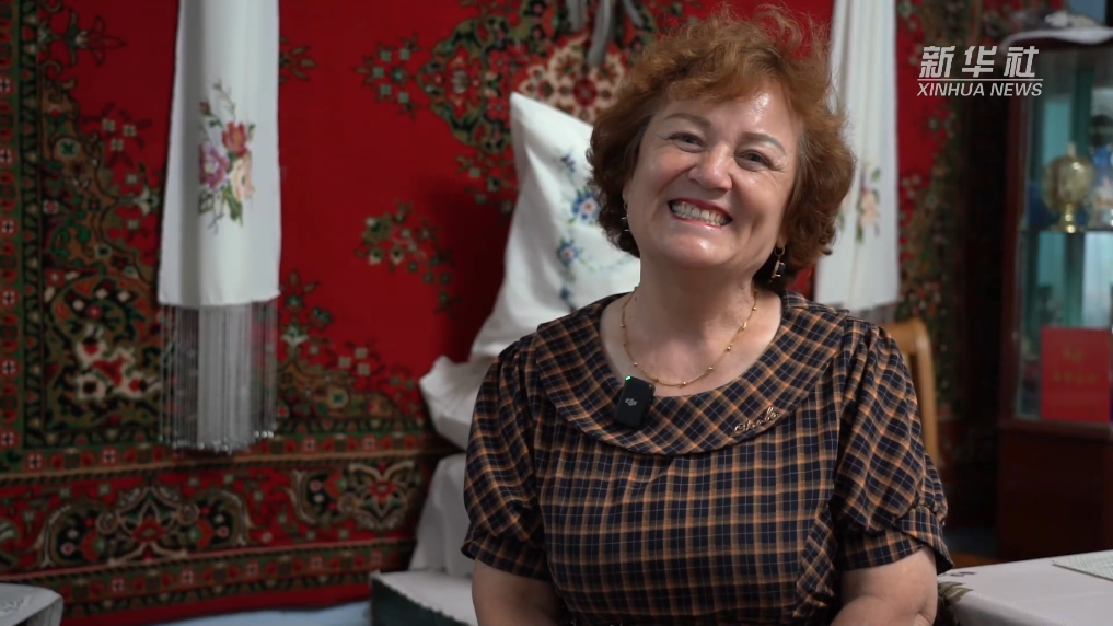 一頭金黃卷發(fā)、一雙深邃的藍眼睛,這位年過六旬的塔塔爾族婦女再屯娜·卡利穆瓦被大家親切地稱為“洋”婆婆。