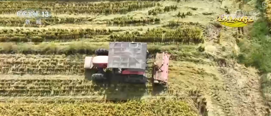 水稻成熟迎收獲 大型機械助力收割