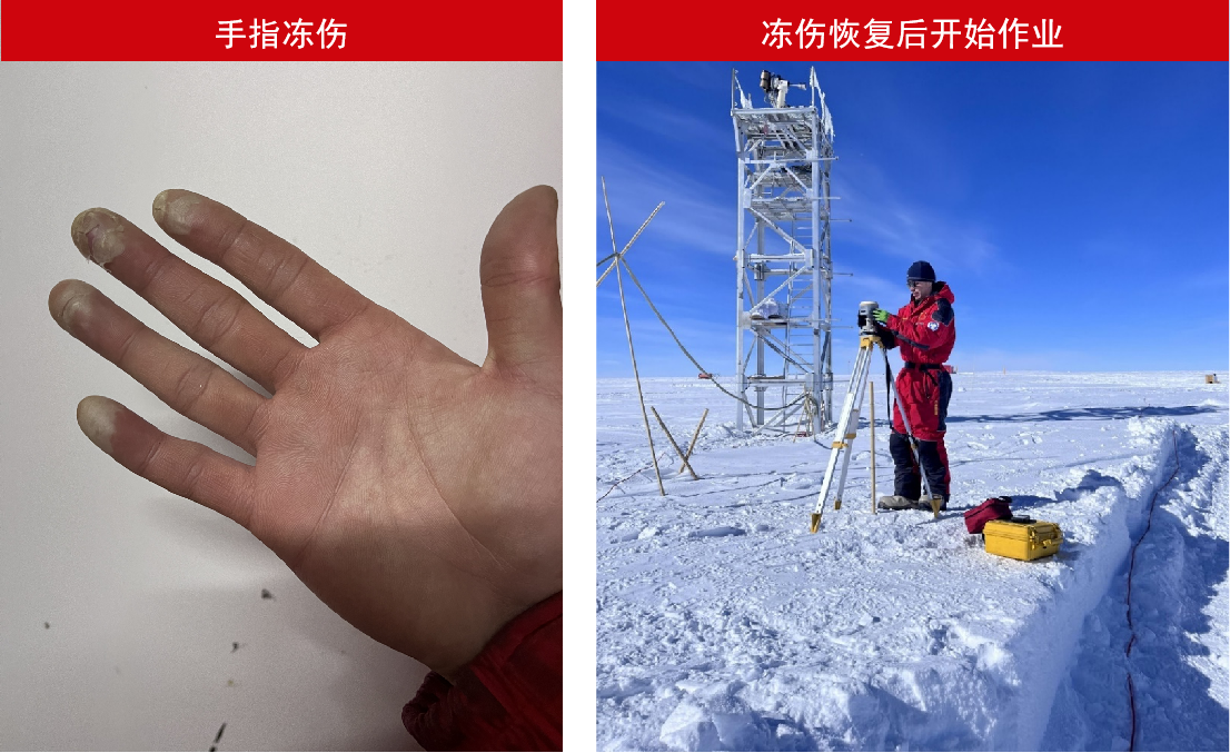 真正到了南極,他也親身體會了這些生死挑戰(zhàn)。在剛剛抵達(dá)昆侖站開展作業(yè)的過程中,因?yàn)樾枰c(diǎn)觸手機(jī)屏幕,不能穿戴厚手套,超過零下30度的極寒凍傷了他的手指,隨隊(duì)醫(yī)生診斷說再嚴(yán)重下去可能會有截肢的風(fēng)險(xiǎn)。“我難道我就這樣無法完成這次的任務(wù)了嗎?”在耿通強(qiáng)烈地請求下,醫(yī)生為他做了引流治療,傷情才得以好轉(zhuǎn)。而他也未等手指恢復(fù),便投入到緊張的科研工作中。