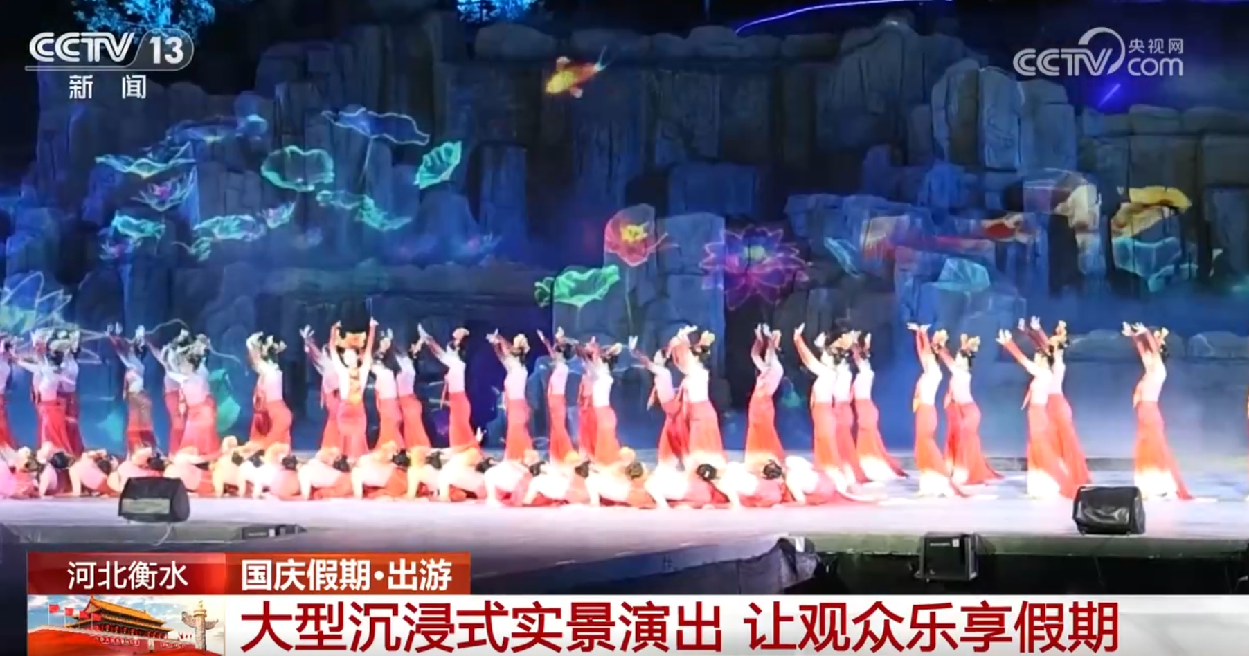 不僅白天能看演出,夜幕降臨后,在河北衡水市,大型沉浸式實(shí)景演出《大美衡水 湖韻千年》精彩上演,主舞臺(tái)演出以水為脈,通過(guò)音、舞、詩(shī)、畫巧妙融合,再加上3D投影等特效技術(shù)的靈活運(yùn)用,營(yíng)造出強(qiáng)烈的視覺效果和藝術(shù)沖擊力。
