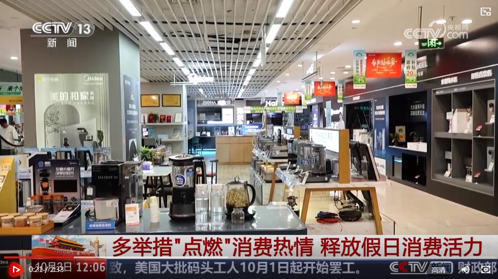 央視網(wǎng)消息:國慶假期開啟,消費市場也迎來了旺季。各地紛紛加大力度滿足節(jié)日市場供給、保障好節(jié)日需求。同時,創(chuàng)新供給方式、推出新的消費場景、加大文旅產(chǎn)品供應,加力推進消費品以舊換新,進一步激活市場。