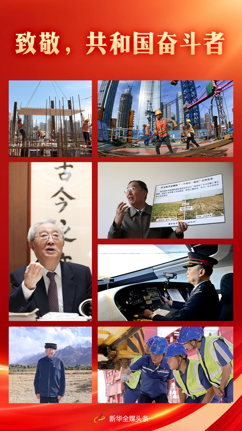 田間地頭、工廠車間、科研一線,在黨的領(lǐng)導(dǎo)下,共和國的奮斗者們勠力同心、開拓進(jìn)取。他們的身影,定格成最美麗的風(fēng)景,匯聚起全面建設(shè)社會(huì)主義現(xiàn)代化國家新征程上的磅礴力量?! ?/p>