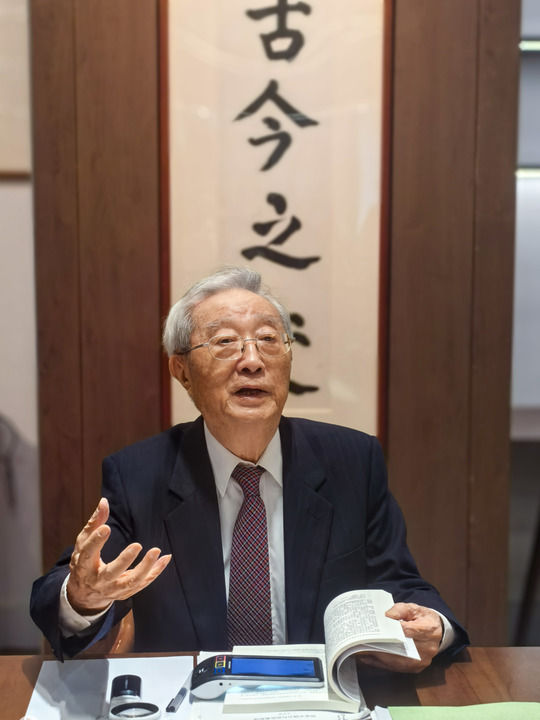 張晉藩教授在中國政法大學(xué)海淀校區(qū)圖書館薊門法史書苑(2024年9月13日攝)。新華社發(fā)(盧云開 攝)