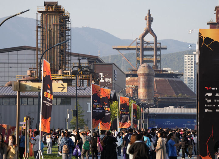 10月3日,游客來到首鋼園區(qū)參觀體驗(yàn)世界乒乓球職業(yè)大聯(lián)盟(WTT)中國大滿貫賽帶來的各項(xiàng)活動。新華社記者 張晨霖 攝