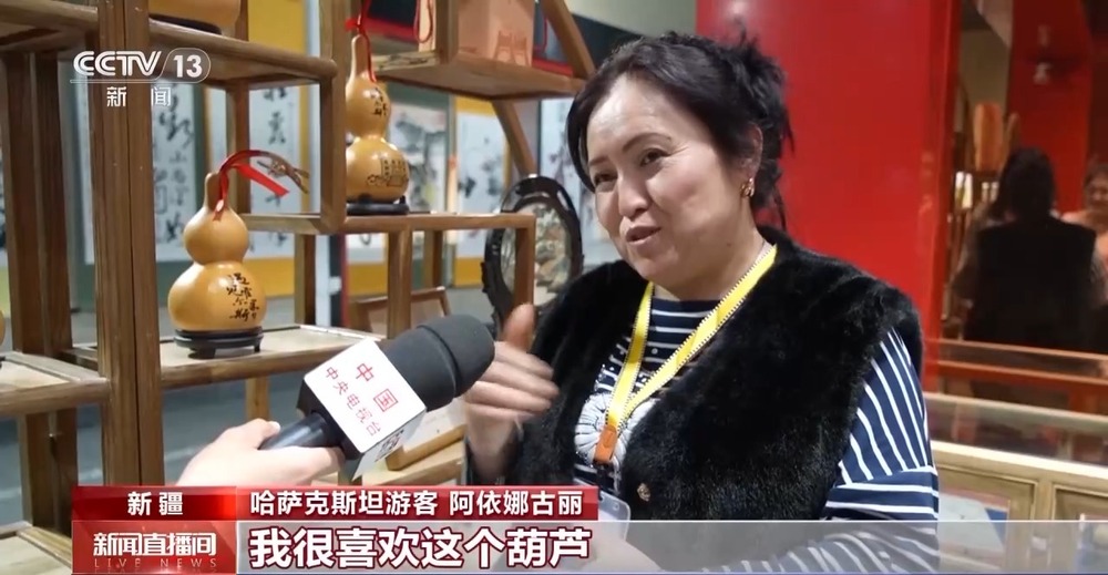 哈薩克斯坦游客 阿依娜古麗:我很喜歡這個葫蘆,我覺得它展示了中國的傳統(tǒng)文化,中國有5000年的文化,我非常喜歡。這是我第一次來到中國,我會把在這里的所見所聞講給我的家人,以后我還會再來的。