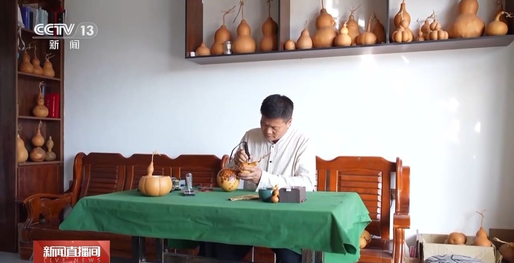 霍爾果斯市葫蘆烙畫非遺傳承人 曹光耀:特別喜歡烙我們新疆的特色,獨特之處就是說燙畫、烙畫、火筆畫它能顯出一種自然的美,它還有古色古香的古韻,特別接地氣。作為烙畫非遺傳承人,我們必須要把好的文化傳承下去。