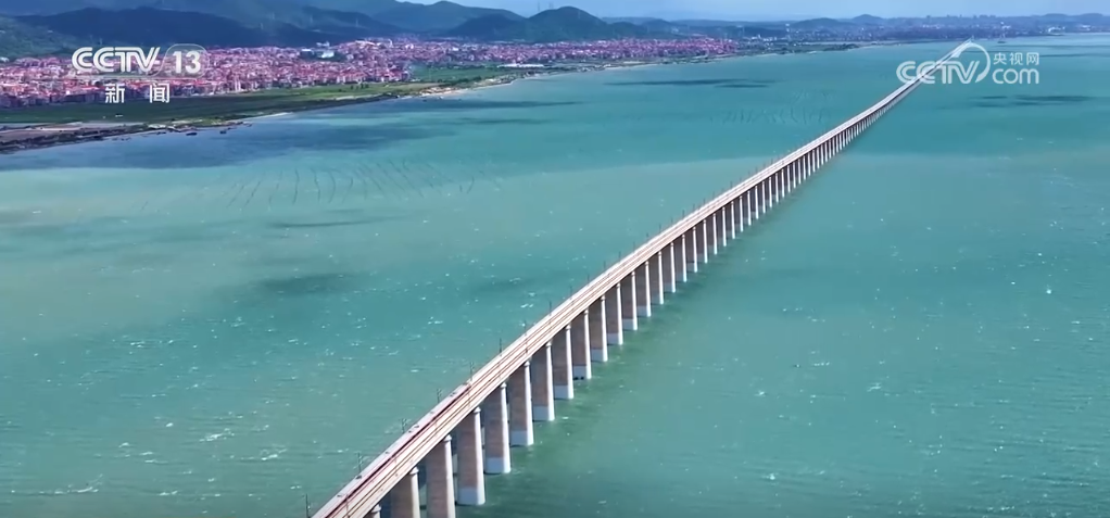 這是我國(guó)首條設(shè)計(jì)時(shí)速350公里的跨海高鐵——福廈高鐵湄洲灣跨海大橋。碧波之上,大橋氣勢(shì)恢宏,連接兩岸。在跨海大橋上行車(chē),受海上風(fēng)力影響很大,通過(guò)這樣的路段通常需要減速慢行。但福廈高鐵實(shí)現(xiàn)了“跨海過(guò)橋不減速”,在不設(shè)風(fēng)屏障等防風(fēng)措施下,列車(chē)可在8級(jí)大風(fēng)下以時(shí)速350公里速度行駛。國(guó)慶假期,福廈高鐵加開(kāi)195趟列車(chē),滿足旅客出行需求。