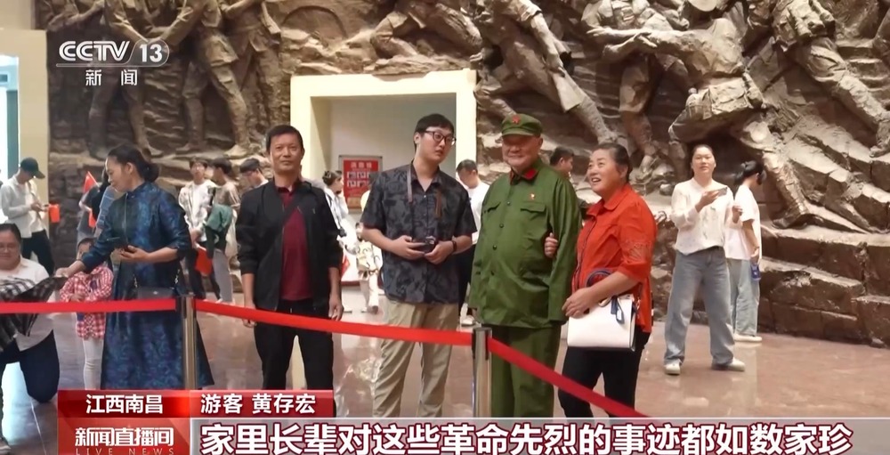 游客 黃存宏:和家人特意來(lái)八一起義紀(jì)念館,家里長(zhǎng)輩對(duì)革命先烈的事跡如數(shù)家珍,來(lái)參觀也是一個(gè)緬懷,也是完成自己的一份心愿,我們也計(jì)劃把當(dāng)?shù)氐募t色景點(diǎn)都逛一遍。
