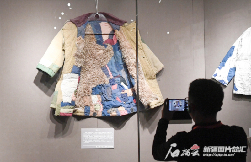9月22日,游客在一件有著296塊補(bǔ)丁的軍大衣前駐足拍攝。(資料圖)石榴云/新疆日?qǐng)?bào)記者 湯永攝