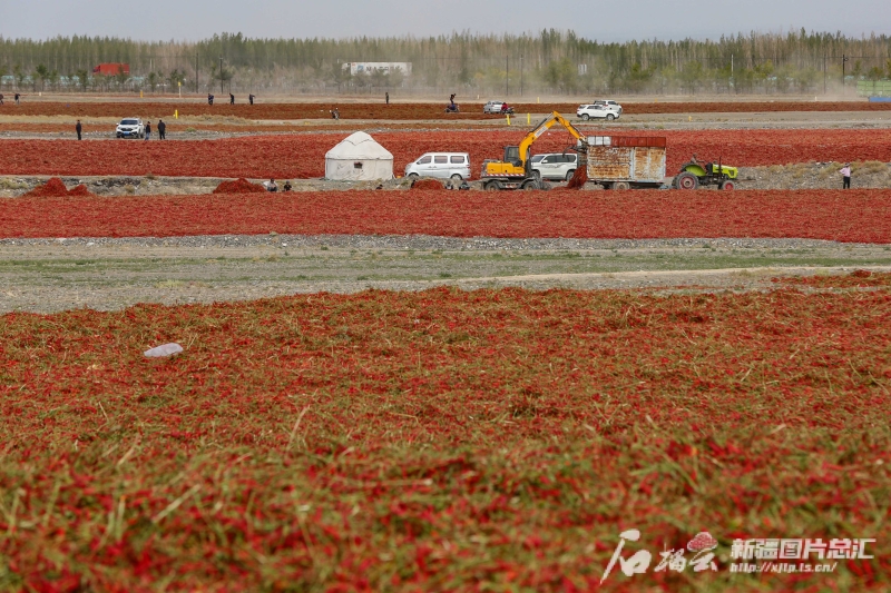 眼下正是辣椒收獲季,沙灣市安集海鎮(zhèn)種植的4萬多畝辣椒陸續(xù)泛紅,種植戶開始采收晾曬,豐收的辣椒曬紅了鄉(xiāng)間。安集海鎮(zhèn)因盛產(chǎn)辣椒而被譽為“中國辣椒之鄉(xiāng)”,年產(chǎn)干椒達2萬噸,辣椒產(chǎn)品暢銷國內(nèi)外市場。