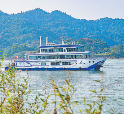 長江上的第一艘氫燃料電池動(dòng)力船“三峽氫舟1”號(hào)在航行。據(jù)測算,“三峽氫舟1”號(hào)相比傳統(tǒng)燃油動(dòng)力船舶,每年可減少二氧化碳排放343.67噸。新華社記者 肖藝九攝