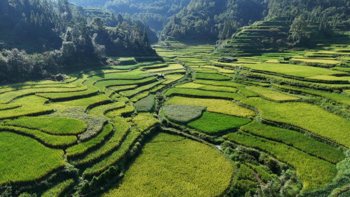 增沖侗寨位于河谷開闊地帶,有著六百余年的建寨歷史,周圍山林環(huán)繞。為了將稀缺的土地資源用到極致,先民們向山林問道,從動(dòng)植物習(xí)性中獲取靈感,靠著古老的農(nóng)耕器具和耕牛,在這片土地上開墾出層層梯田。而后,借助自然的山泉水進(jìn)行灌溉,于是,一片獨(dú)特而又美麗的梯田景觀應(yīng)運(yùn)而生,這里也成為了如今名副其實(shí)的“魚米之鄉(xiāng)”。