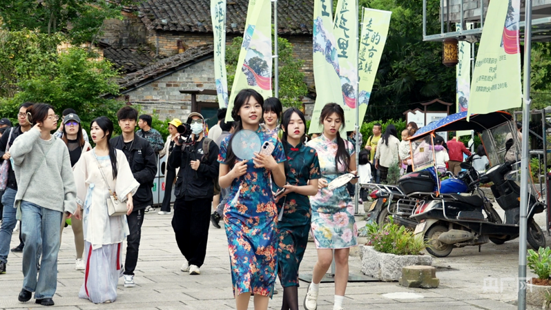 放眼古鎮(zhèn),隨處可見游客著一身旗袍或者漢服在古鎮(zhèn)之中游玩拍照,在古建筑群中穿梭游走。沿路攤位琳瑯滿目的陶瓷文創(chuàng)產(chǎn)品、瑤河中古色古香的花船表演、非遺傳承人現(xiàn)場表演……層出不窮的古鎮(zhèn)文化引得游客們紛紛駐足觀看,在古鎮(zhèn)體驗一半煙火一半詩意。