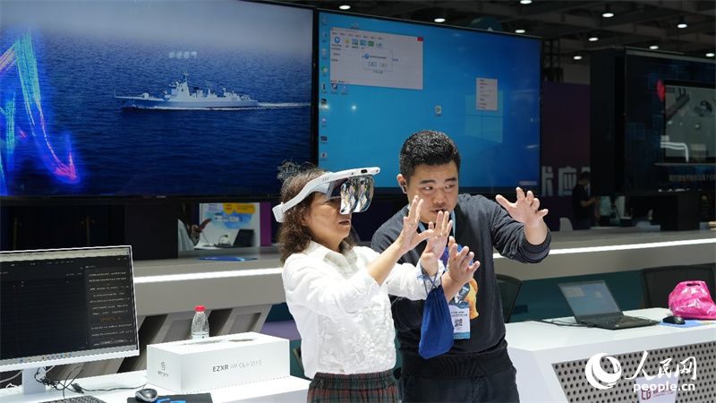 觀眾在新媒體技術(shù)展進行AR互動體驗。人民網(wǎng)記者 吳茜薇攝