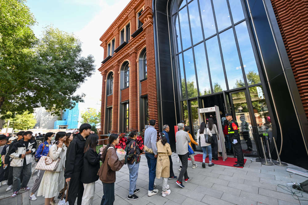 今年國(guó)慶假期,讀者排隊(duì)等待進(jìn)入位于天津意式風(fēng)情區(qū)的鐘書閣書店。新華社記者 孫凡越 攝