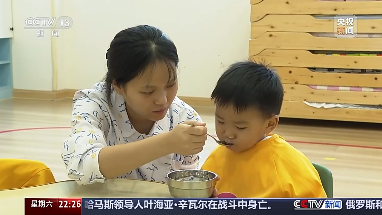 隨著晨檢的結(jié)束,孩子們便可以到食堂享用早餐。每周的食譜都會根據(jù)孩子生長發(fā)育的需求進(jìn)行調(diào)整。除了入園體檢,以及由營養(yǎng)師制定的食譜外,永川區(qū)婦幼保健院托育中心與其他傳統(tǒng)托育中心不同的是,配有醫(yī)師、推拿師、營養(yǎng)師、治療師、評估師等8師共育服務(wù)團(tuán)隊,同時還定期為孩子們進(jìn)行生長監(jiān)測以及發(fā)育評估、五官保健等活動。