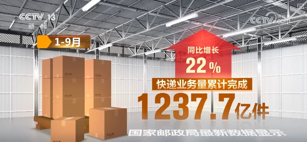 記者從國(guó)家郵政局獲悉,前三季度,我國(guó)郵政行業(yè)寄遞業(yè)務(wù)量完成1376.7億件,同比增長(zhǎng)19.6%。其中,快遞業(yè)務(wù)量累計(jì)完成1237.7億件,同比增長(zhǎng)22%。
