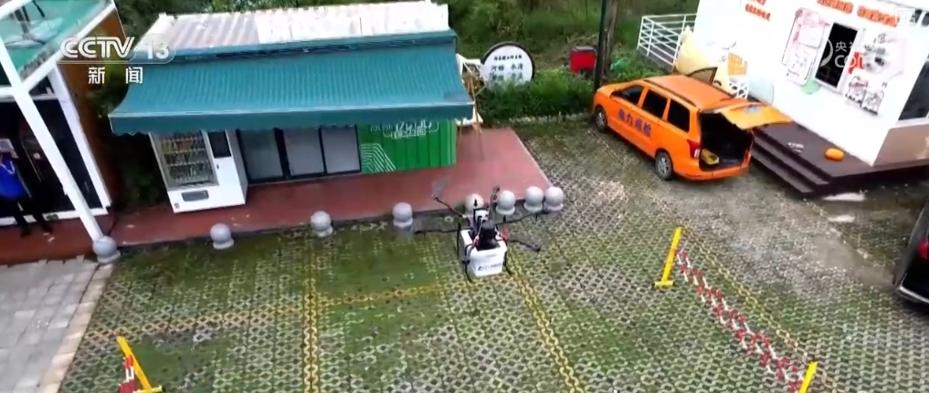 在成都市新都區(qū)的一處快遞分揀中心前,隨著操作人員在控制臺(tái)按下指令,載著快遞包裹的無人機(jī)轉(zhuǎn)動(dòng)旋翼、騰空而起,按照設(shè)定航線,飛越17公里的農(nóng)田山林。20分鐘后,無人機(jī)緩緩降落在清流鎮(zhèn)水梨村。住在附近的村民張女士在收到快遞短信后來到快遞驛站,取出了自己的包裹。