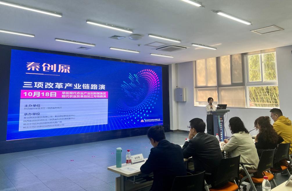 10月18日,一場(chǎng)“三項(xiàng)改革”產(chǎn)業(yè)鏈路演在陜西楊凌農(nóng)業(yè)高新技術(shù)產(chǎn)業(yè)示范區(qū)舉辦。(陜西省科技廳供圖)