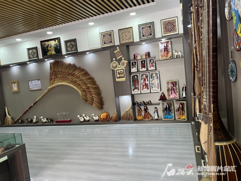 疏附縣托克扎克鎮(zhèn)阿亞格曼干村村委會(huì)里的手工藝品展示館,陳列著各種手工藝品。石榴云/新疆日?qǐng)?bào)記者 拍熱扎提·阿不都攝