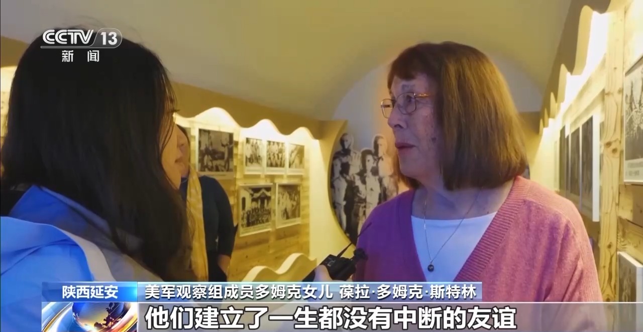 美軍觀察組成員多姆克女兒 葆拉·多姆克·斯特林:延安之行影響了我父親,影響了他之后的整個(gè)生活。正如他之前所說(shuō)的,在延安他們是同志、是兄弟,他們建立了一生都沒(méi)有中斷的友誼。如今這份友誼通過(guò)他們的家人,通過(guò)那些聽(tīng)過(guò)這個(gè)故事的人延續(xù)下去,這真是太棒了。