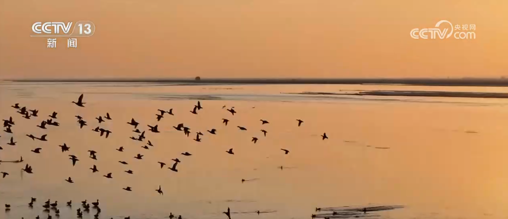 隨著天氣轉(zhuǎn)涼,近日,黃河濕地自然保護(hù)區(qū)山西永濟(jì)段,迎來上萬只遷徙候鳥,夕陽下,鳥兒們或在河面上休憩覓食,或成群結(jié)隊(duì)展翅飛翔,與絢麗的晚霞、水天一色的黃河相映成趣,再現(xiàn)“落日飛天”景觀。此次過境候鳥主要有黑鸛、大天鵝、黑鶴等,當(dāng)?shù)亓謽I(yè)部門組織人員24小時(shí)不間斷巡護(hù),同時(shí)在鳥類聚集區(qū)安裝了紅外監(jiān)控視頻,保障候鳥遷徙安全。