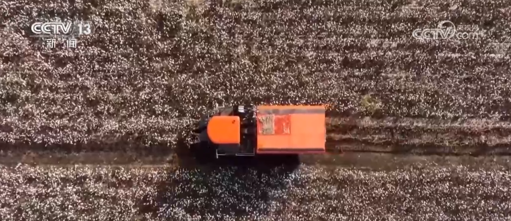 在無棣縣西小王鎮(zhèn)的棉田里,采棉機(jī)械正將棉花從棉稈上脫離,并通過氣流將棉花推送至儲存車廂。每臺采棉機(jī)械一天的作業(yè)量是過去800個工人一天的勞動成果,成本也從人工采摘每畝720元,降到了機(jī)械化采摘的每畝120元。