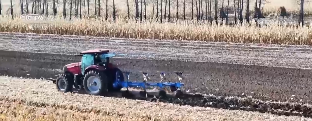 從空中看去,未收獲的地方是呈現(xiàn)金色,收割后的地面,大型的翻地機(jī)跟在后面將秸稈直接翻入地下,翻地車(chē)一過(guò)就露出油汪汪的黑土地了。這些翻完的地之后還要耙平、起壟,這樣第二年開(kāi)春可以直接種植了。記者在當(dāng)?shù)夭稍L期間,看到了這些農(nóng)戶幾乎是24小時(shí)晝夜不停在進(jìn)行收割和秋整地,可以說(shuō)是“人歇機(jī)器不歇”,在搶抓農(nóng)時(shí),當(dāng)?shù)赜芯湓捊小敖鹕x田、黑色越冬”。
