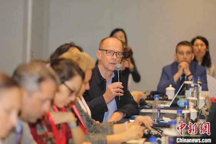 10月27日,第二屆世界漢學(xué)家大會(huì)在福建南平開幕。圖為中國(guó)人民大學(xué)哲學(xué)院兼職教授薄國(guó)強(qiáng)(Roland Boer)在大會(huì)分論壇發(fā)言。(受訪者供圖)