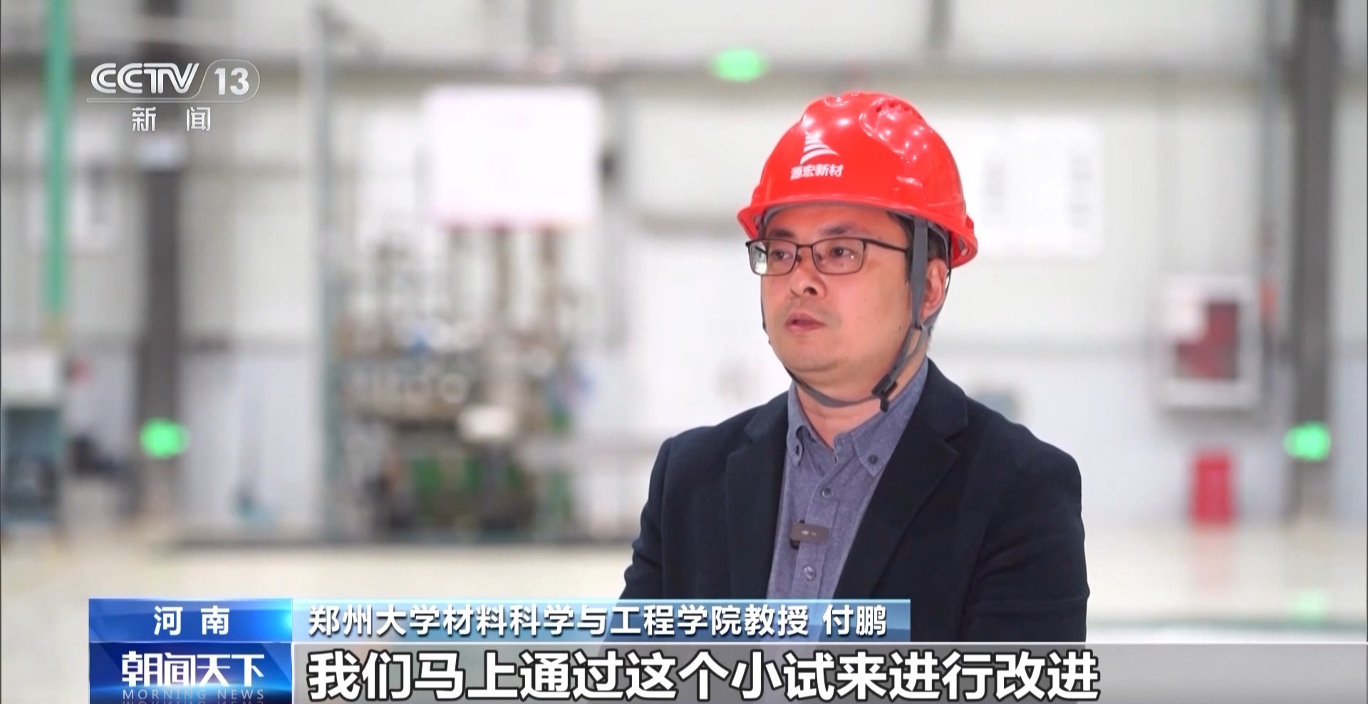 鄭州大學(xué)材料科學(xué)與工程學(xué)院教授 付鵬:一旦產(chǎn)品上出現(xiàn)了問題,我們馬上通過小試來進(jìn)行改進(jìn),進(jìn)而通過中試和產(chǎn)業(yè)化,進(jìn)行技術(shù)迭代,并沒有把這個問題直接丟給這個企業(yè),而是我們?nèi)潭几髽I(yè)在一起。