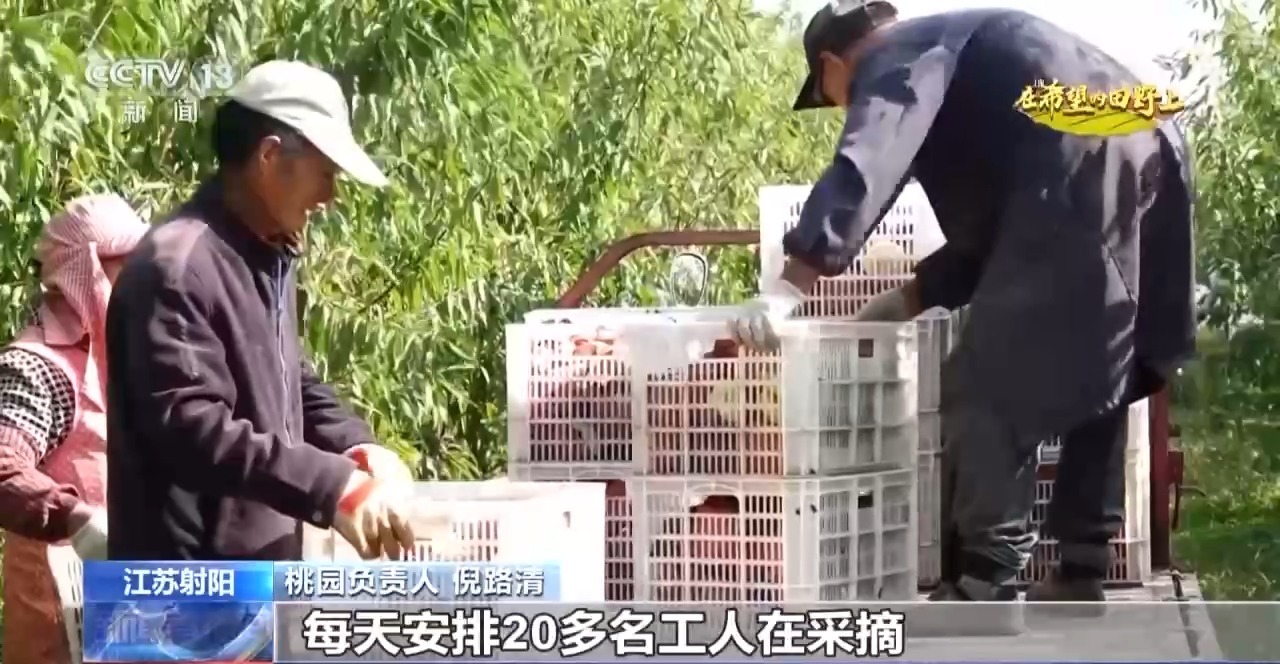 在鹽城市射陽縣新坍鎮(zhèn)的一處桃園種植了4萬多株桃樹。果農(nóng)們忙著摘桃、分揀、裝筐,預(yù)計(jì)整個(gè)采摘銷售期能持續(xù)一個(gè)月左右。