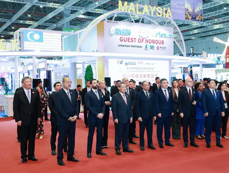 11月5日,國務院總理李強在上海出席第七屆中國國際進口博覽會暨虹橋國際經濟論壇開幕式,并發(fā)表主旨演講。這是開幕式后,李強同與會外國領導人共同巡館。新華社記者 王曄 攝
