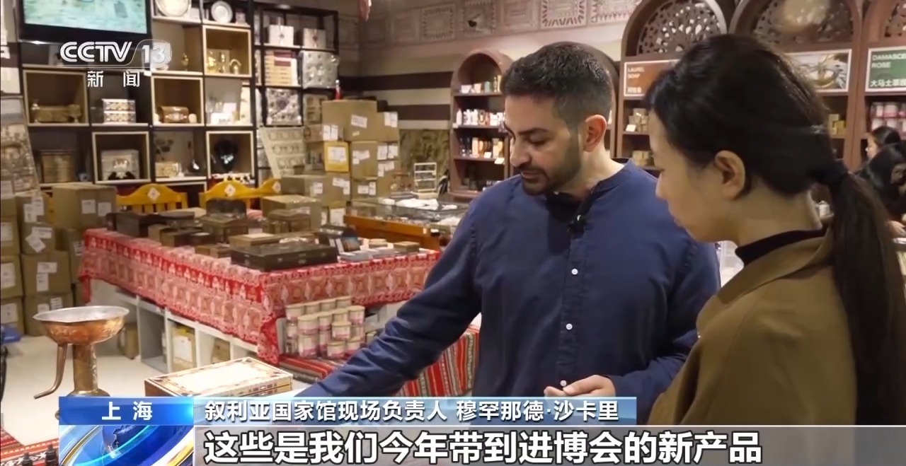 敘利亞國家館現(xiàn)場負(fù)責(zé)人 穆罕那德·沙卡里:實(shí)際上,這些是我們今年帶到進(jìn)博會(huì)的新產(chǎn)品,它在敘利亞非常受歡迎,我希望中國消費(fèi)者也能喜歡。