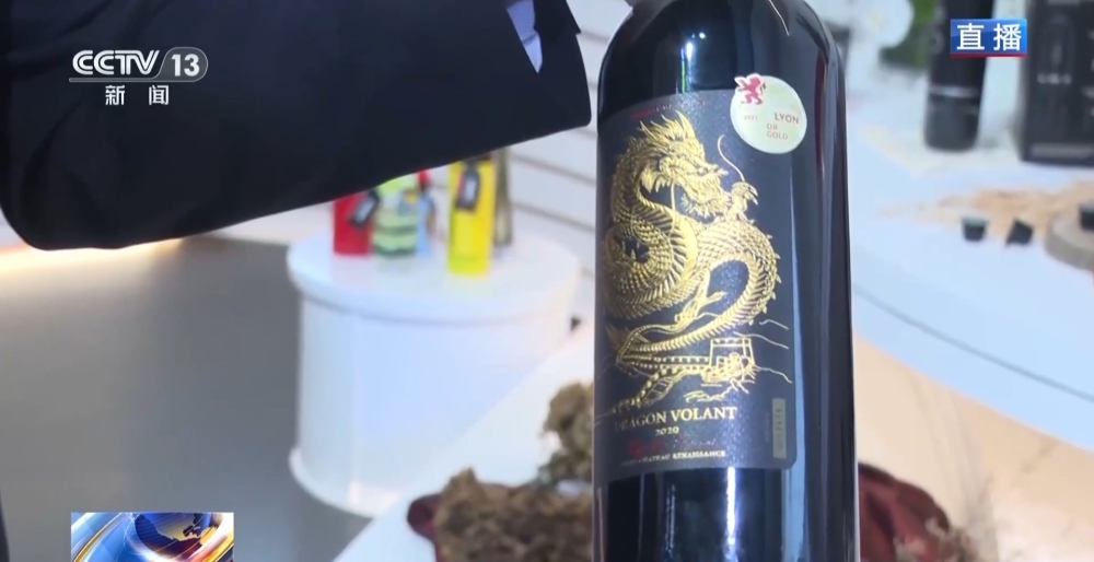 要特別介紹的是一款干紅葡萄酒。這款葡萄酒,酒瓶里面,是來自法國波爾多一家葡萄酒莊園陳釀18個月的美酒;而酒瓶外面,也是一個亮點,是由中國和法國設計師聯(lián)合設計的極具中國文化特色的金龍和長城圖案包裝,這不僅是一瓶佳釀,更是中法文化交流、友好往來的見證。