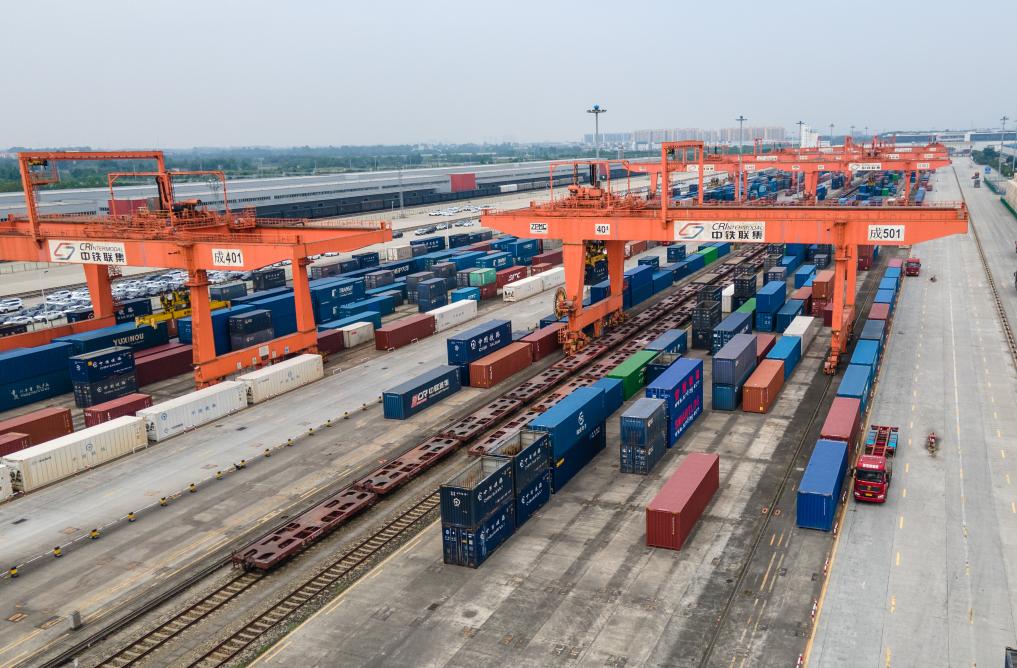 中國(guó)(四川)自由貿(mào)易試驗(yàn)區(qū)成都青白江鐵路港片區(qū)(2024年6月13日攝,無人機(jī)照片)。新華社記者 唐文豪 攝