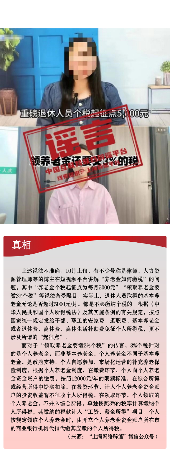 領(lǐng)取養(yǎng)老金要繳3%個(gè)稅,起征點(diǎn)5000元/月?