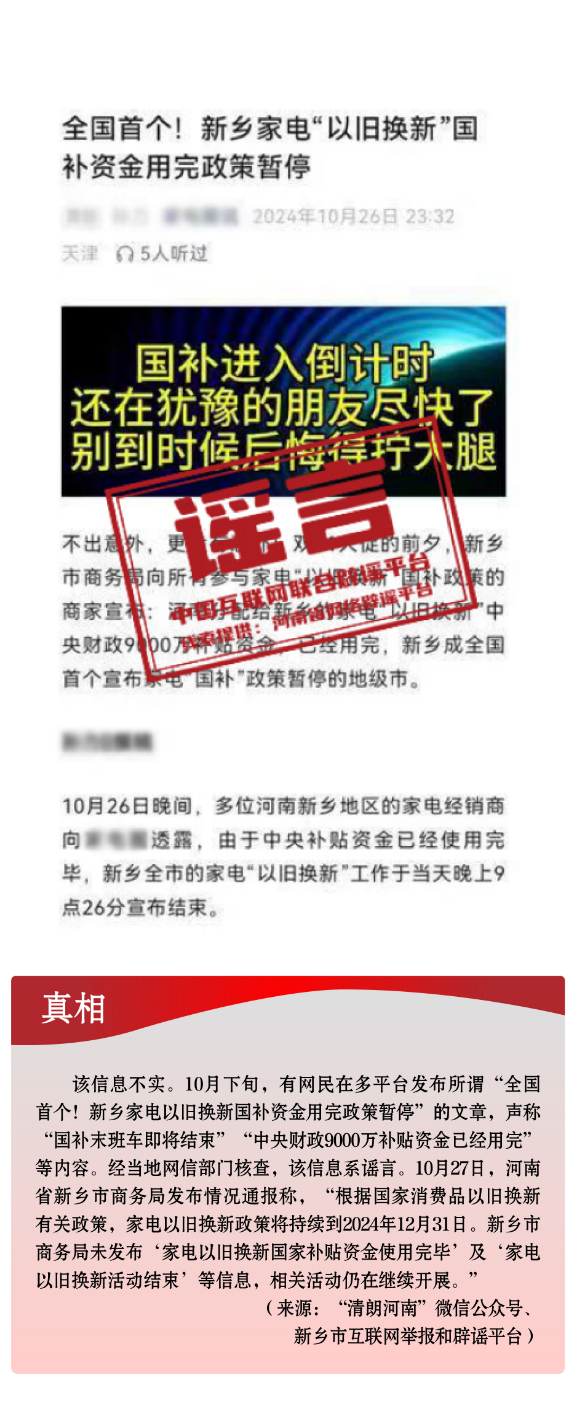 河南新鄉(xiāng)家電“以舊換新”國家補(bǔ)貼資金用完、政策暫停?