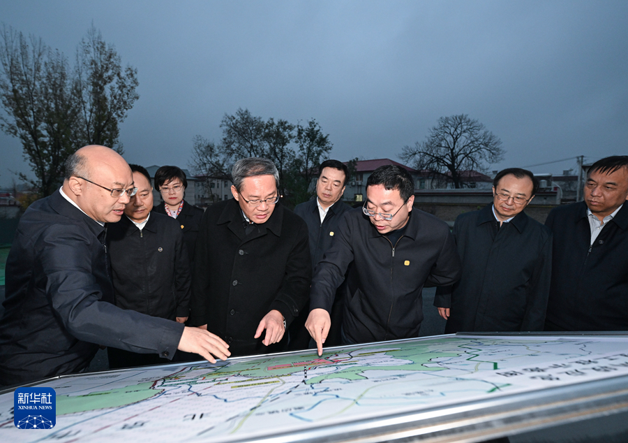 11月13日,中共中央政治局常委、國務(wù)院總理李強在河北調(diào)研。這是李強在涿州市小清河分洪區(qū)南圍堤建設(shè)工程現(xiàn)場,察看項目最新進展,聽取河北省災(zāi)后重建重大水利工程等情況匯報,與設(shè)計施工監(jiān)理人員交流。新華社記者 饒愛民 攝