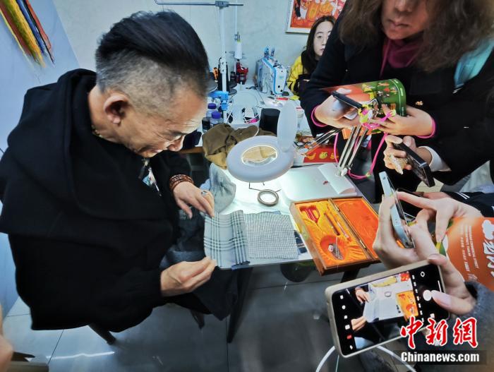 不足十平方米的店鋪中,老師傅徐春元桌前靜坐,目光如炬,手腕翻飛,細(xì)如牛毛的針在布料中來回穿梭。已年過花甲的他,從事織補(bǔ)工作整整48年,是“傳統(tǒng)精工織補(bǔ)技藝”非遺項(xiàng)目持有人。那雙巧手,總能將破損的衣物修復(fù)得如初見般完美。