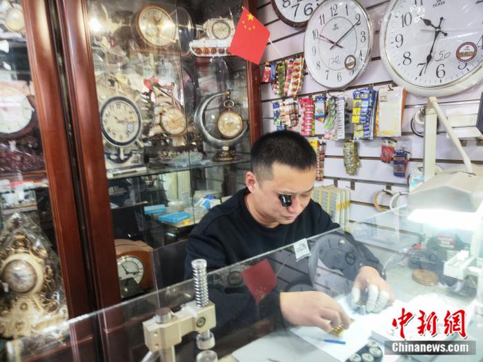 不遠(yuǎn)處,聚亨鐘表店的王晴川正低頭專注修表。這家修表店已經(jīng)傳承了三代人,五年出徒,十年大成,他在此開店已二十三年。秒針的滴答作響中,時(shí)間被賦予了新的意義和價(jià)值。