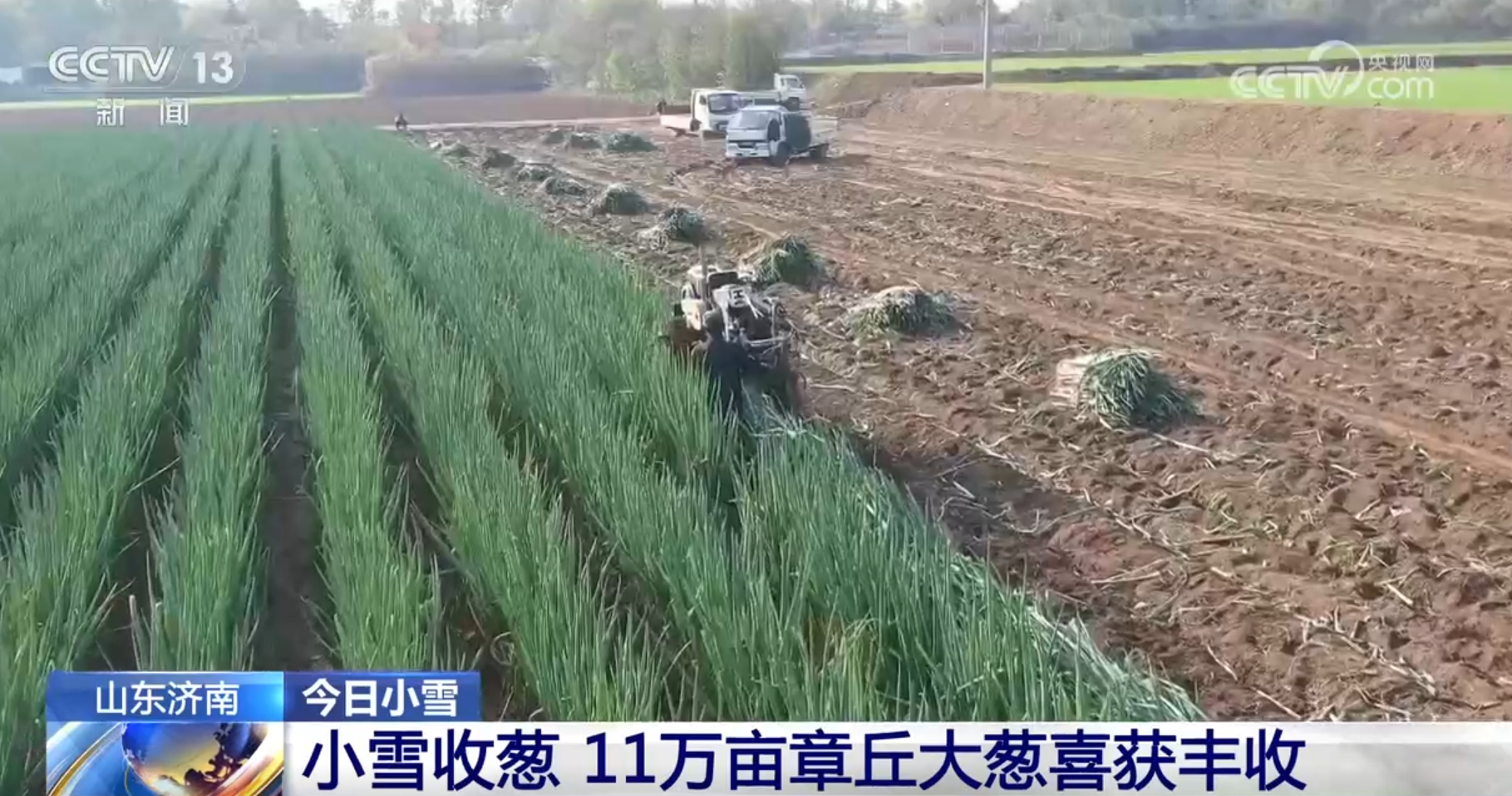 俗語說“小雪收蔥,不收就空”,小雪節(jié)氣是北方大蔥收獲的時候。在山東濟(jì)南,這里自古就有種植大蔥的傳統(tǒng),眼下11萬畝章丘大蔥喜獲豐收,村民們正忙著收蔥、賣蔥,種植基地里,大蔥收獲機的應(yīng)用大大提高了采收效率。